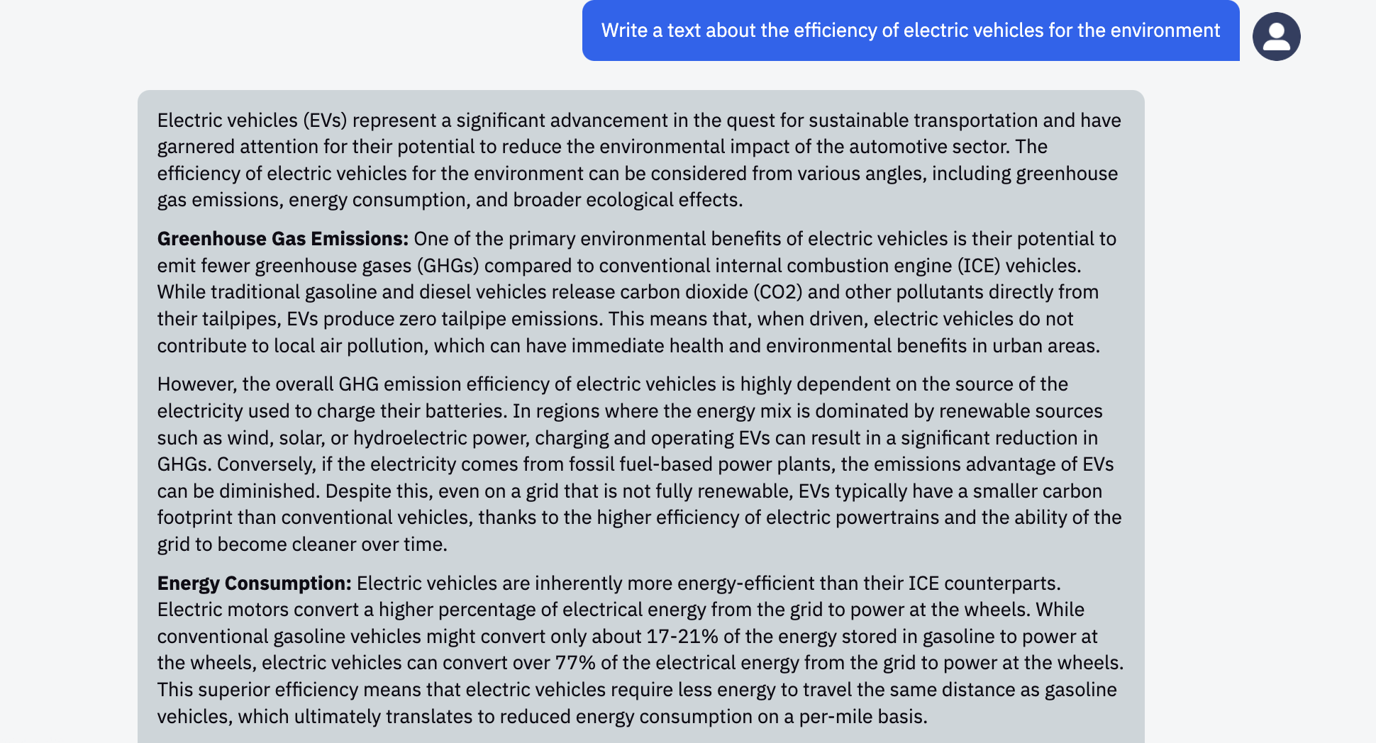 For example, you can request: "Write a text about the efficiency of electric vehicles for the environment" or "Create an intriguing headline for an article about veganism." The intelligent system will process your request and generate the corresponding content.