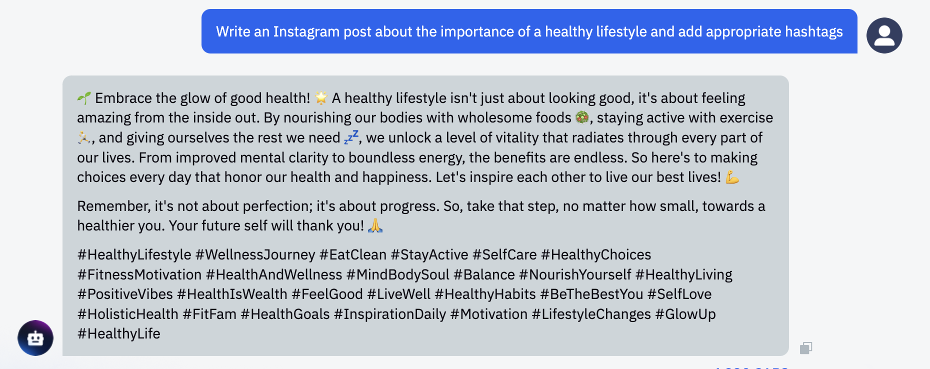 ChatGPT can be a very useful tool when it comes to creating content for your social media platforms. It can help you write engaging posts, create effective ad copy, and even assist you in choosing the right hashtags to increase the visibility of your posts. Simply ask it to "Write an Instagram post about the importance of a healthy lifestyle and add appropriate hashtags".