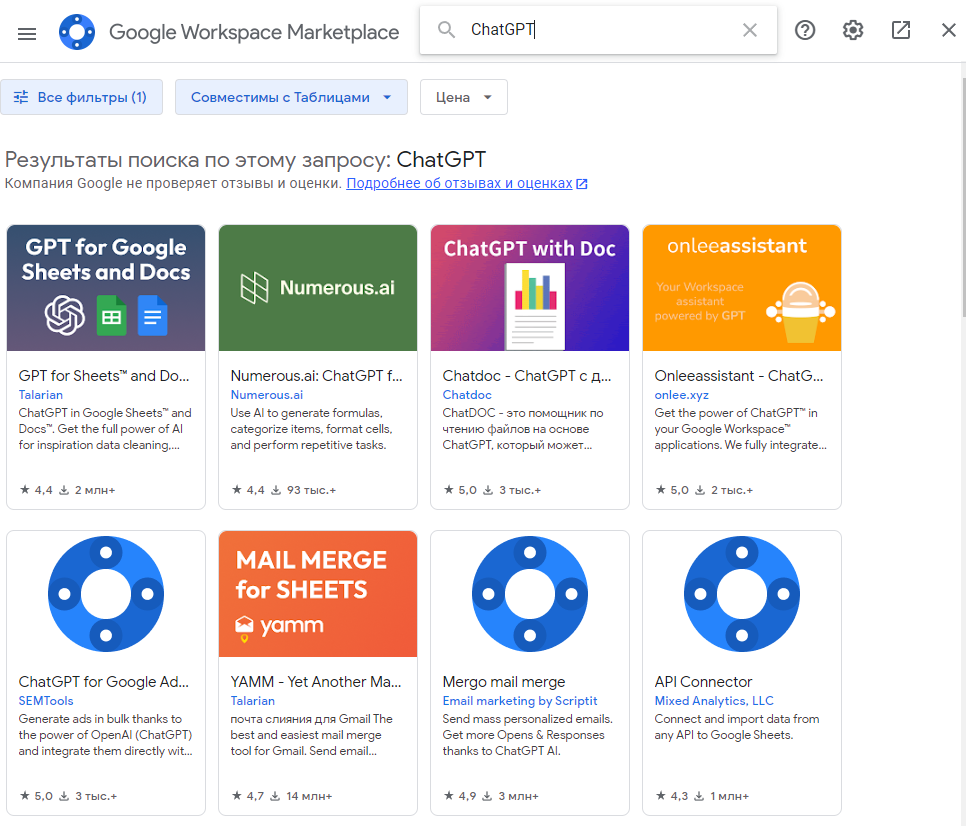 Либо же ввести в строку поиска “ChatGPT” и выбрать любой понравившийся вам плагин: