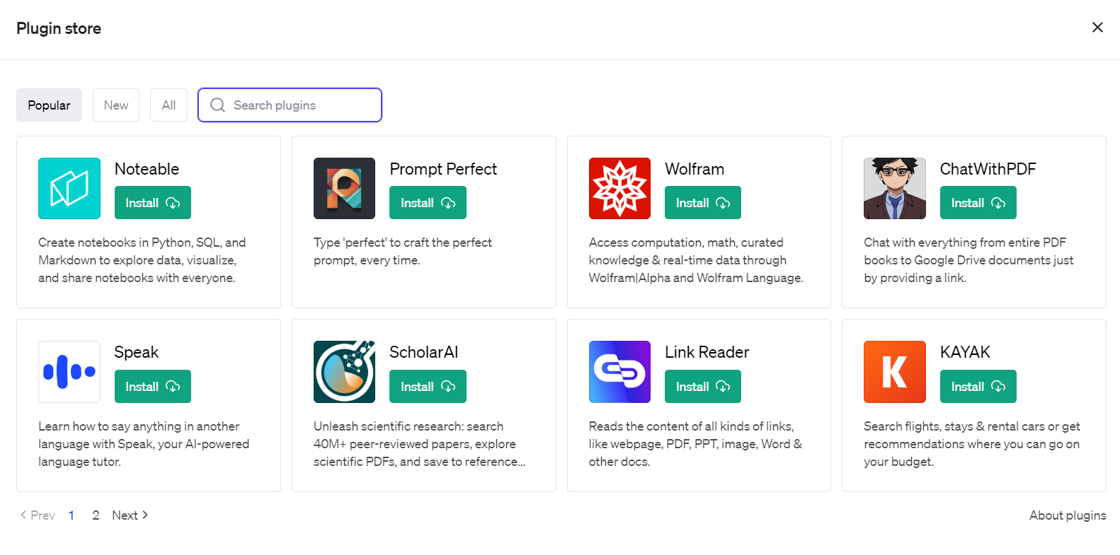 OpenAI создала маркетплейс плагинов, где третьи лица предлагают плагины для ChatGPT.
