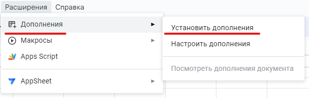 Далее выбрать там “Дополнения”, а затем “Установить дополнения”: