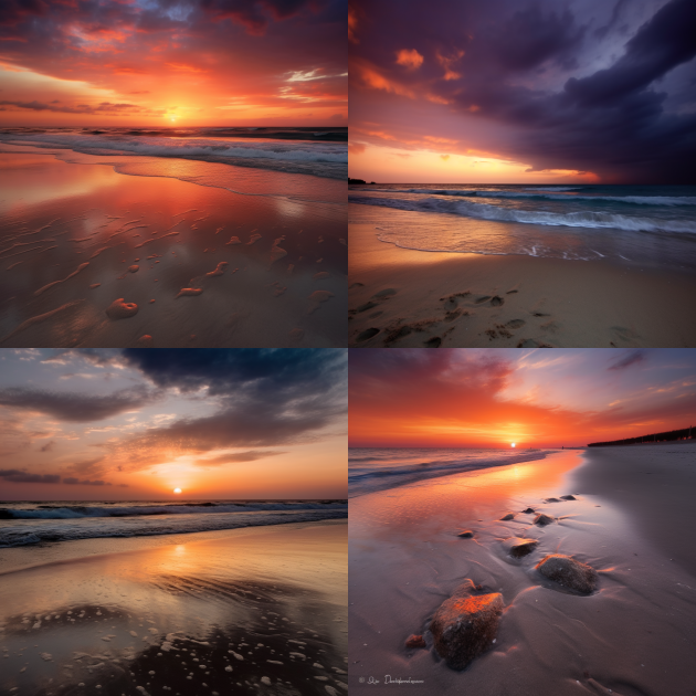 Для второго изображения ваш запрос может быть: "Эмоция спокойного заката на пляже":
